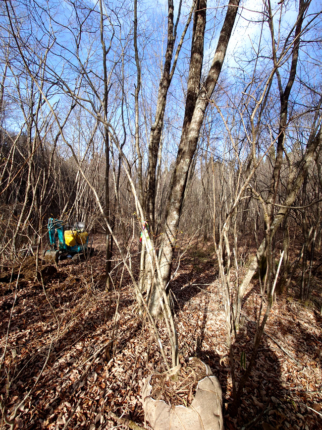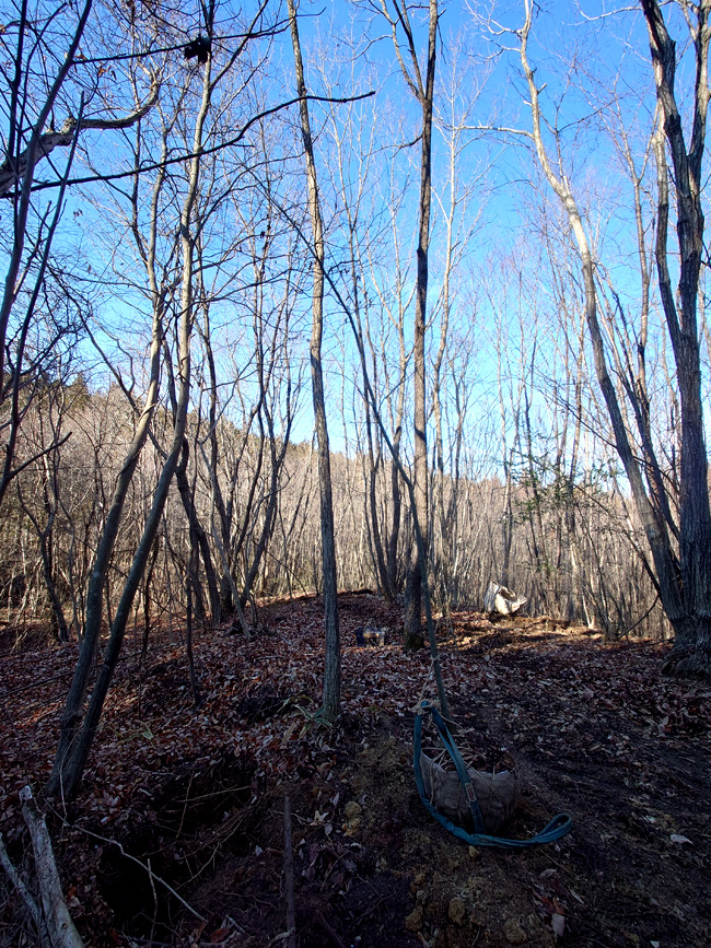 山採り地Cから白花藪椿x4、オトコヨウゾメ(梅田様向け) 山採り地Bから小ぶりのアオハダ、ウグイスカグラ、ナツハゼ(奈々様向け)を背負ってきたよ 山採り地Cは作業道未整備、年明け整備ですね 山採り地B一ケ所作業道拡張工事完了 |
