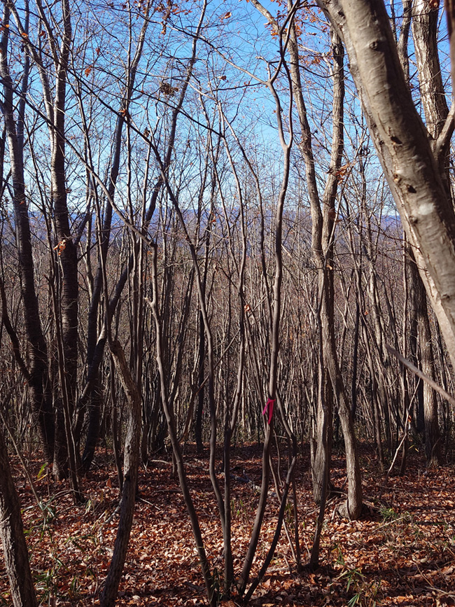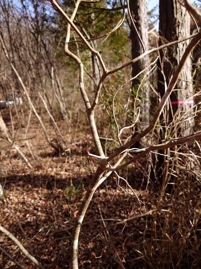 | 山到着08:30,気温1℃、今時暖かい気温です。 Floresta Suwama HM' Garden向け3mネジキ(画像)を背負ってきました。他4.5mアオダモは新年に運んできます。 | |