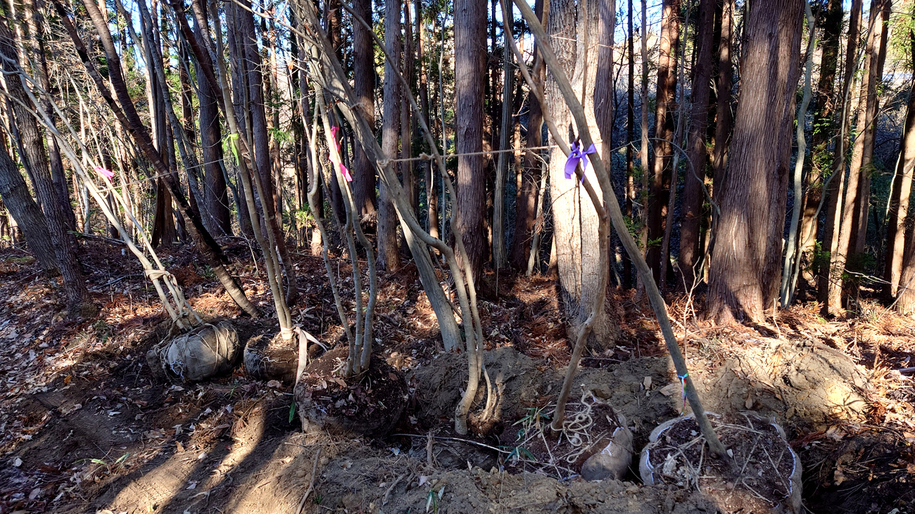 4.5mクラスのアオハダやアオダモ、2mクラスの大株ヤマツツジなど掘りあげた | |