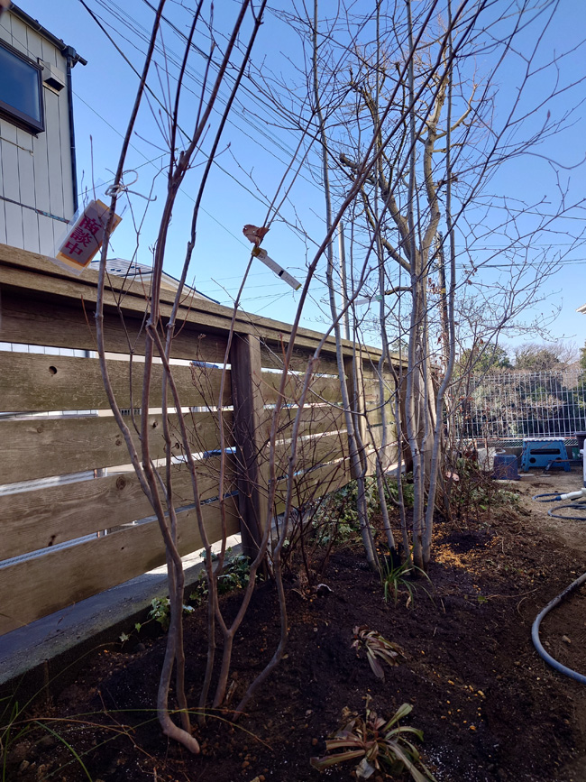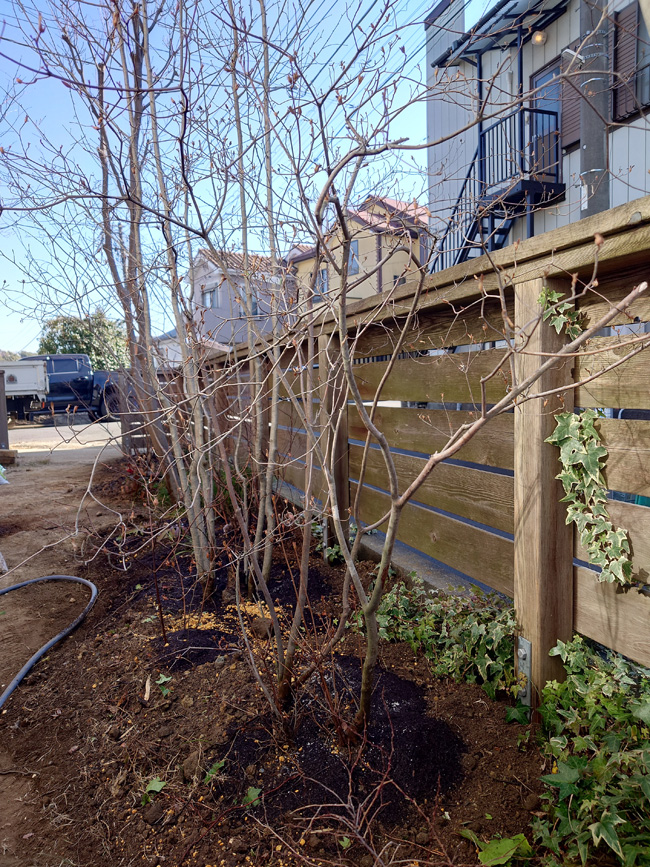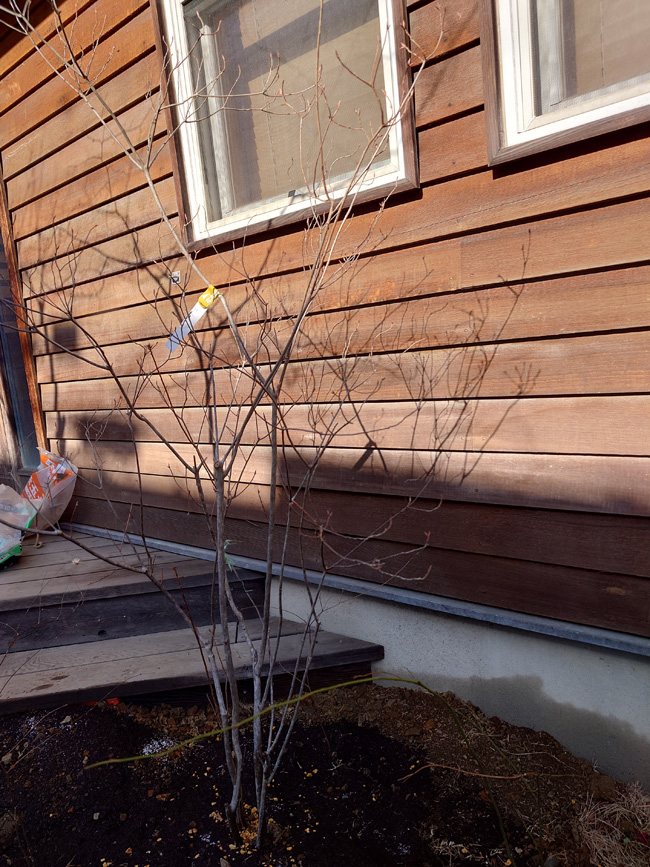 太い木・左は既存のモミジやほぼ中央はヤマボウシです