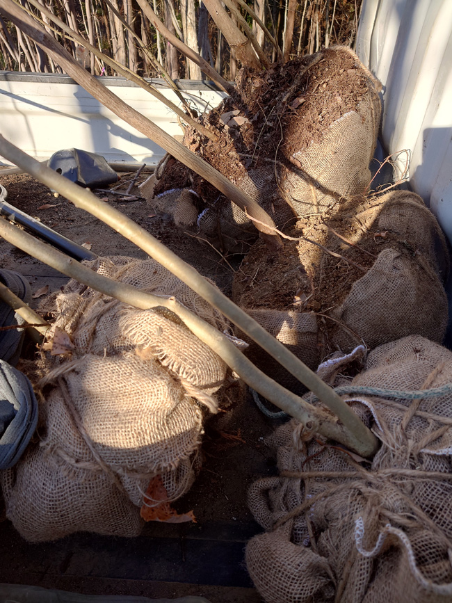 4.5mクラスのアオハダやアオダモ、2mクラスの大株ヤマツツジなど掘りあげた | |