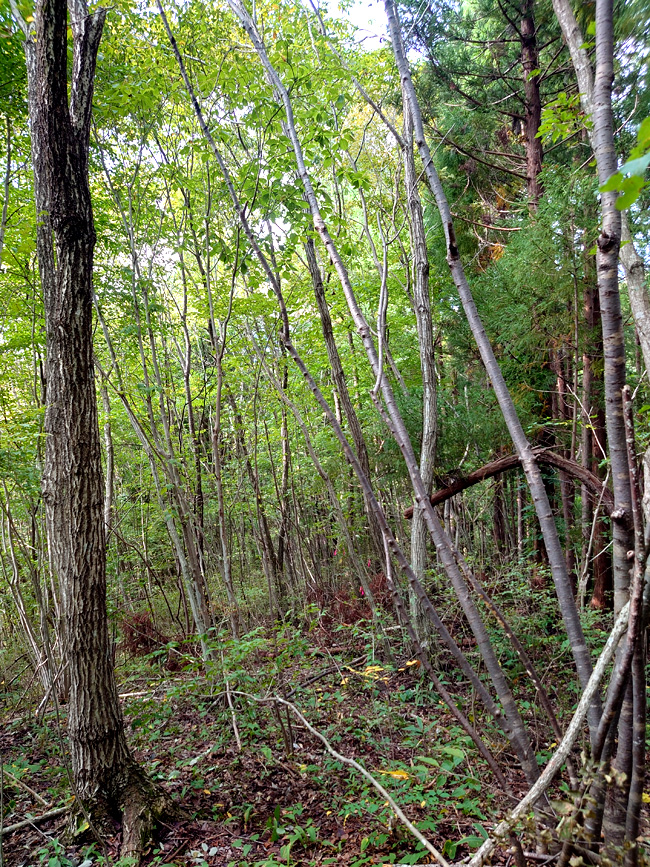 | 黒羽邸向け実生の株立アオダモ | アオダモに、他の木の折れた枝が引っかかってる |