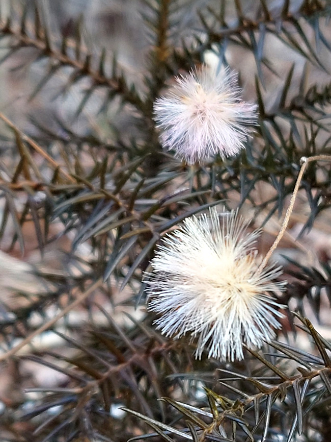 | 横浜N邸向けのコアジサイとコシアブラ、 3.7mアオハダx2、小田原Y邸向けハクウンボクを背負ってきました。 | まだ残ってるコウヤボウキ冠毛(綿毛) |