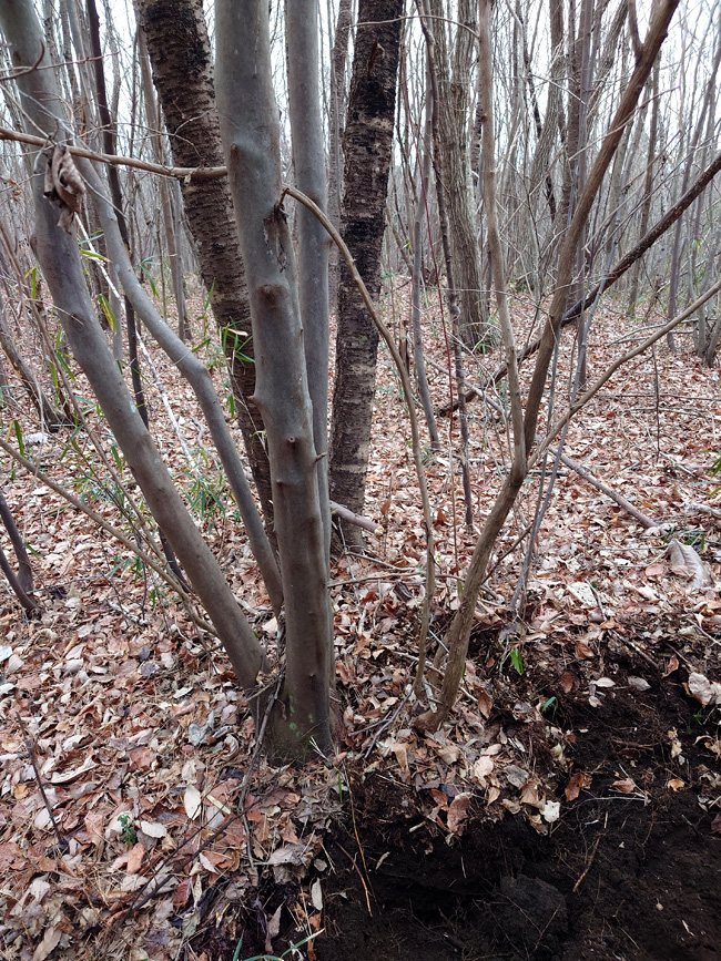 | 樹高4m アオハダ2株掘りお昼 風が強く寒いので(昼0℃)、風当たらない場所で{常陸太田市O邸向けコウヤボウキ、コアジサイ掘り}軽トラで背負ってきたよ | |