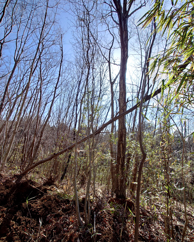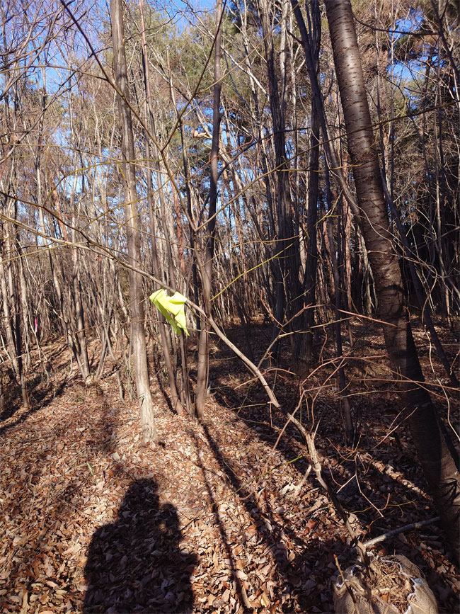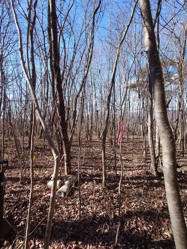 | 山到着08:30,気温1℃、今時暖かい気温です。 Floresta Suwama HM' Garden向け3mネジキ(画像)を背負ってきました。他4.5mアオダモは新年に運んできます。 | |