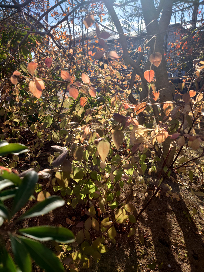小さな秋みーつけた 晩秋の紅葉が始まる素敵なお庭。