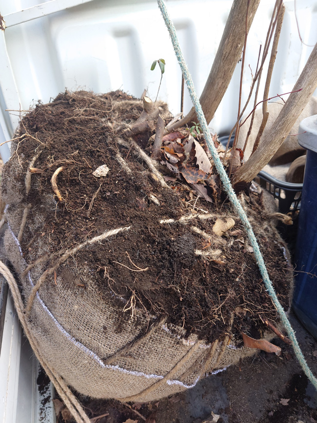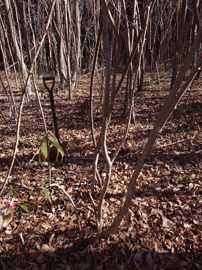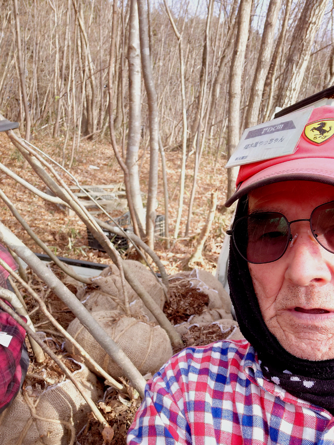 | 樹高4m アオハダ2株掘りお昼 風が強く寒いので(昼0℃)、風当たらない場所で{常陸太田市O邸向けコウヤボウキ、コアジサイ掘り}軽トラで背負ってきたよ | |