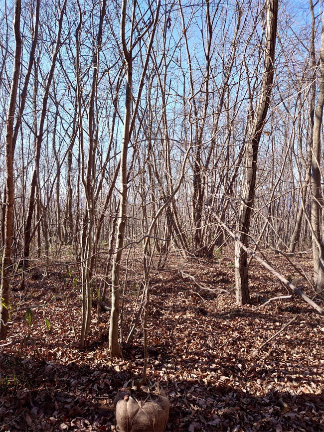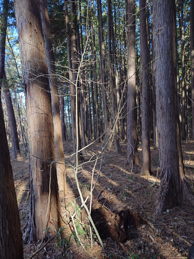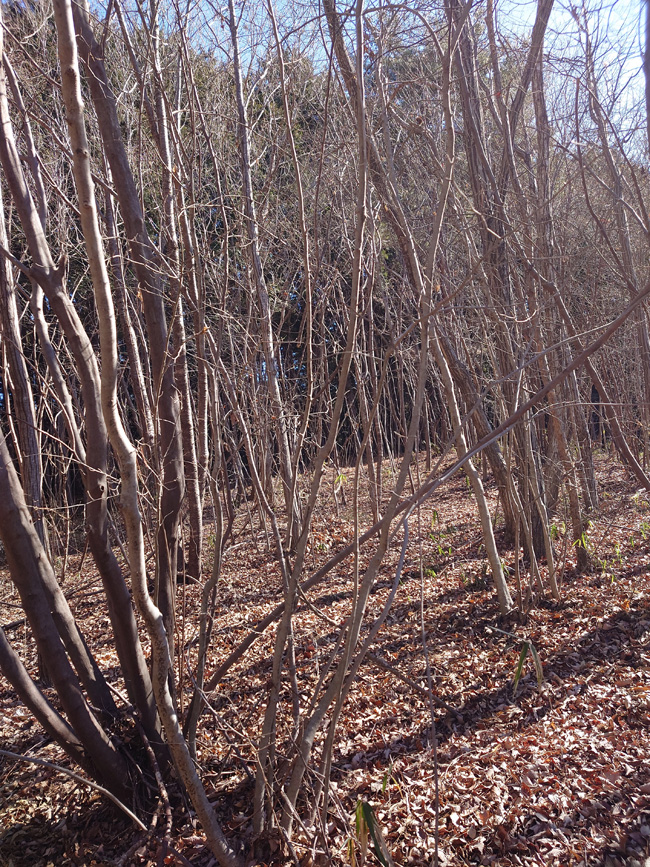 | 山到着08:30,気温1℃、今時暖かい気温です。 Floresta Suwama HM' Garden向け3mネジキ(画像)を背負ってきました。他4.5mアオダモは新年に運んできます。 | |