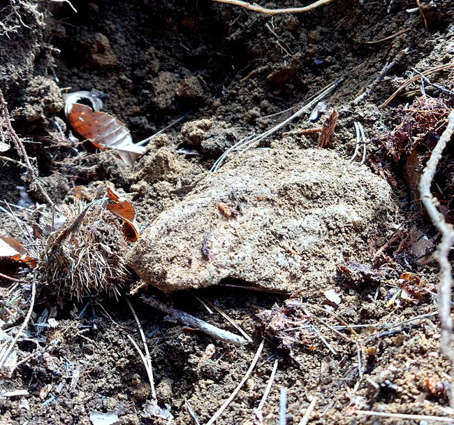 | 3.5mアオハダは山に置いてけぼり {常陸太田市O邸向け3mアオハダ、小ぶりのアオハダ、アオダモ、ツリバナ、川崎向けサワシバx2}を軽トラで背負ってきたよ。 お昼の気温が2℃、寒くてやってられません、従って帰る。 アオハダ掘ってら出てきた両生類みたいな石は花崗岩 阿武隈高地などでは、花崗岩が風化してできた「真砂土(まさど・マサ土)」が地盤として広く分布しています。 | |