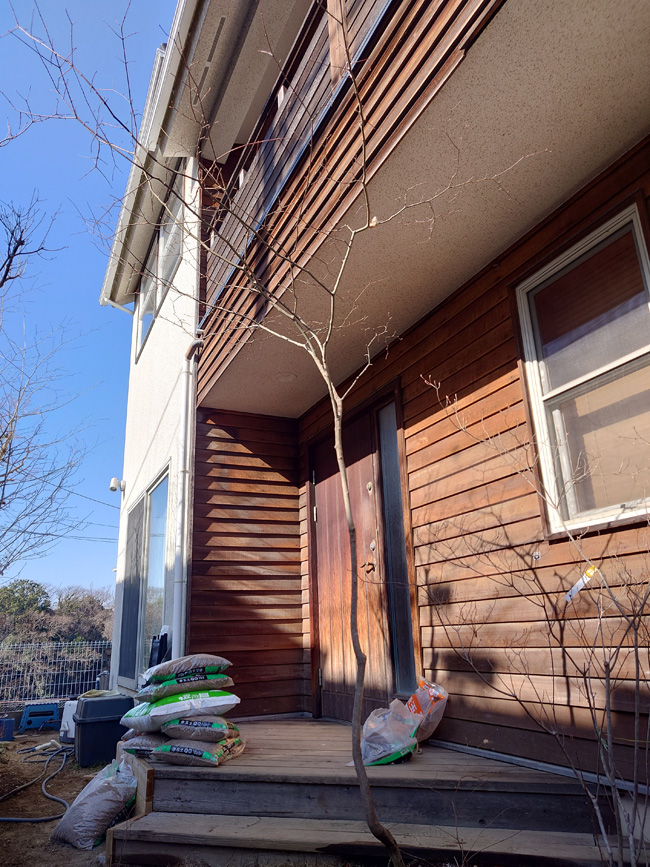 太い木・左は既存のモミジやほぼ中央はヤマボウシです